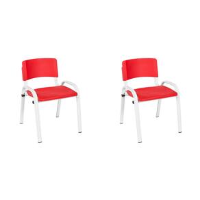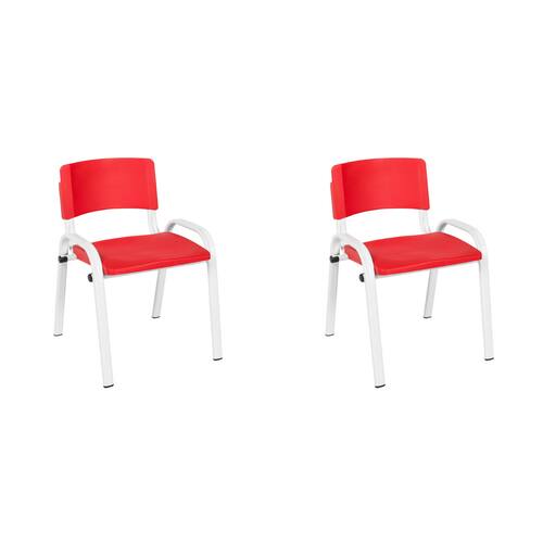 Kit 2 Cadeiras Escolares ISO Infantil Base Branca Estrutura Metálica - Vermelho