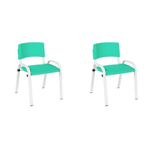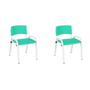 Kit 2 Cadeiras Escolares ISO Infantil Base Branca Estrutura Metálica - Verde Claro
