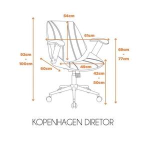 A cadeira Kopenhagen Diretor é toda revestida em couro ecológico e possui sua estrutura em madeira, o que a torna ótima por conta de seu design para salas de reuniões. Ela também possui o mecanismo relax, o que irá manter quem estiver sentado nela mais confortável, além de ser possível ajustar a altura do assento! Altura do Conjunto: 100 cm Ambiente: null Ambiente Principal: Escritório Cor: Preto Informação Complementar: 2x Cadeira Escritório Diretor Giratória Kopenhagen Preto/Marrom Largura: 61 cm Altura: 100 cm Peso: 16 kg Profundidade: 60 cm Necessita Montagem: Sim