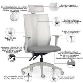 Equipada com um mecanismo Evolution, um sistema de contato permanente, essa cadeira giratória abraça as suas necessidades, permitindo ajustes precisos na altura do assento, do encosto e dos braços. Cada detalhe foi pensado para proporcionar um suporte ideal, respeitando o biotipo do usuário e promovendo uma postura saudável durante longas horas de trabalho. Já a base pirâmide, adornada com rodízios em PU e sistema anti-risco, desliza suavemente sobre qualquer superfície, garantindo movimentos ágeis e seguros. Por fim, o encosto com apoio de cabeça completa a experiência, permitindo que você se concentre no que realmente importa, enquanto sua mente flui livremente.