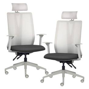 Color: Cinza Preto | Color Family: Cinza | Color Simple: Cinza | Color Supplier: CinzaPreto | Com apoio de braços: Sim | Com aro para pés: Não | Com rodas: Sim | Cor: Cinza Preto | Formato de venda: Kit 2 unidades | Materiais do aro para pés: na | Material: Polímero injetado, espuma injetada, tela dublada vulcanizada, rodízios em PU, revestimento em Sintét | Material do estofamento: Espuma Injetada em Poliuretano 35mm | MaterialFamily: Polímero | Model: Flow Presidente | Modelo: Flow Presidente | Modelo detalhado: Flow Presidente | OriginCountry: Brasil | OriginState: PR | ProductContents: 02 Cadeiras de Escritório | ProductHeight: 111 cm | ProductInstructions: Produto para uso em ambiente interno, nao devendo ficar exposto ao sol, calor e umidade excessivos. | Product Length: 71 cm | ProductWarranty: 90 dias após o recebimento do produto | Product Weight: 13 kg | ProductWidth: 71 cm | Requer montagem: Sim | Size Description: Altura: 111 cm x Largura: 71 cm x Profundidade: 71 cm | Supplier Simple Name: Kit 2 Cadeiras Escritório Giratória Presidente Flow F02 Base Cinza Sintético Preto - Lyam Decor | Tipo de cadeira de escritório: Presidente Giratória