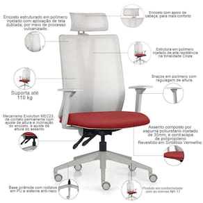Color: CinzaVermelho | ColorFamily: Cinza | ColorSimple: Cinza | ColorSupplier: CinzaVermelho | Com apoio de braços: Sim | Com aro para pés: Não | Com rodas: Sim | Cor: CinzaVermelho | Formato de venda: Kit 2 unidades | Materiais do aro para pés: na | Material: Polímero injetado, espuma injetada, tela dublada vulcanizada, rodízios em PU, revestimento em Sintét | Material do estofamento: Espuma Injetada em Poliuretano 35mm | MaterialFamily: Polímero | Model: Flow Presidente | Modelo: Flow Presidente | Modelo detalhado: Flow Presidente | OriginCountry: Brasil | OriginState: PR | ProductContents: 02 Cadeiras de Escritório | ProductHeight: 111 cm | ProductInstructions: Produto para uso em ambiente interno, nao devendo ficar exposto ao sol, calor e umidade excessivos. | ProductLength: 71 cm | ProductWarranty: 90 dias após o recebimento do produto | ProductWeight: 13 kg | ProductWidth: 71 cm | Requer montagem: Sim | SizeDescription: Altura: 111 cm x Largura: 71 cm x Profundidade: 71 cm | SupplierSimpleName: Kit 2 Cadeiras Escritório Giratória Presidente Flow F02 Base Cinza Sintético Vermelho - Lyam Decor | Tipo de cadeira de escritório: Presidente Giratória