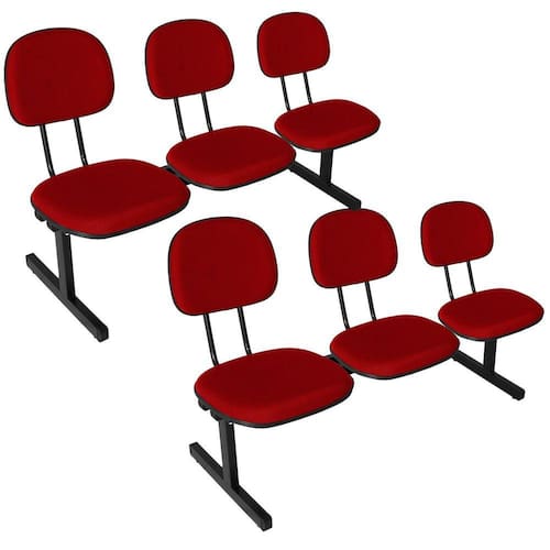 - Possui 1,00mt de comprimento e os pés tem 58cm de profundidade Altura do assento até o chão: 47 cm Ambiente Principal: Comércio Assento Estofado: Sim Cada Assento Suporta Até (kg): 130 kg Complexidade da Montagem: Baixa: pode ser montado por uma pessoa sozinha Cor: Vermelho Cor do Produto: Vermelho Informações Complementares: Sem apoio para braços Itens Inclusos: 2 - Assentos,Kit de parafusos, 2 - Encostos, 2 Estruturas longarina Linha ou Coleção: Longarinas Manual de Montagem e Instalação: https://product-hub-prd.madeiramadeira.com.br/840981/documents/2e162937-bc35-4e68-ba4c-9abcb8e75b9d1258114manual.pdf Material da Base: Tubo Cromado Material do Assento: Almofada com Espuma Material do Braço: Ferro Necessita Montagem: Sim Origem do Produto: Nacional Peso: 16,8 kg Possui Apoio para Braços: Não Quantidade de Itens: 3 Quantidade de Lugares: 03 Recomendações de Uso, Manutenção e Limpeza: Pano levemente úmido com água Sistema de Montagem: Parafusos Ean: 7908308791800