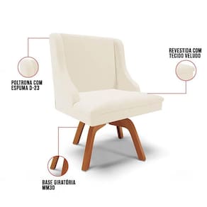 A Cadeira Estofada Lia possui design elegante e é ideal para quem busca aconchego e sofisticação na hora das refeições. A Base Giratória de Madeira é resistente e permite que se movimente com facilidade e ainda suporta até 120kg! Além disso, a Cadeira Estofada é produzida com Madeira Eucalipto de reflorestamento, ecologicamente correta e o estofado é composto em espuma macia D-23 e revestido em Veludo, tecido clássico, elegante, macio, agradável ao toque, além de resistente e durável é versátil e combina com vários estilos de decoração!