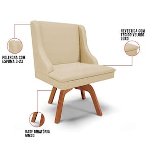 A Cadeira Estofada Lia possui design elegante e é ideal para quem busca aconchego e sofisticação na hora das refeições. A Base Giratória de Madeira é resistente e permite que se movimente com facilidade e ainda suporta até 120kg! Além disso, a Cadeira Estofada é produzida com Madeira Eucalipto de reflorestamento, ecologicamente correta e o estofado é composto em espuma macia D-23 e revestido em Veludo, tecido clássico, elegante, macio, agradável ao toque, além de resistente e durável é versátil e combina com vários estilos de decoração!