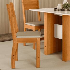 Complete o visual da sua sala de jantar ou cozinha com o Kit 4 Cadeiras Milano. Desenvolvidas para quem não abre mão do conforto e da praticidade, estas cadeiras combinam um design clássico com materiais que facilitam a sua rotina, sendo o par perfeito para a sua mesa de jantar. Por que as Cadeiras Milano são a escolha ideal? - Conforto Garantido: O assento conta com espuma D11 e revestimento em courvin, proporcionando uma experiência agradável durante as refeições e sendo extremamente fácil de limpar. - Alta Durabilidade: O encosto em MDP 15mm aliado ao acabamento em pintura UV garante que as cadeiras mantenham a beleza e a resistência por muito mais tempo, mesmo com o uso diário. - Proteção para o seu Piso: Equipada com sapatas em PVC, que evitam o contato direto da estrutura com o chão, impedindo riscos e garantindo maior estabilidade. - Design Ergonômico: Com 92cm de altura, o encosto oferece um ótimo apoio para as costas, garantindo uma postura confortável à mesa. - Versatilidade e Estilo: O acabamento refinado permite que elas se adaptem facilmente a diversos estilos de decoração, desde o moderno ao tradicional. Destaques Técnicos: Dimensões: Altura 92cm | Largura 40cm | Profundidade 37cm. Assento: Estofado com espuma D11 e revestido em Courvin. Estrutura: Encosto em MDP 15mm com pintura UV. Quantidade: O kit contém 04 cadeiras.