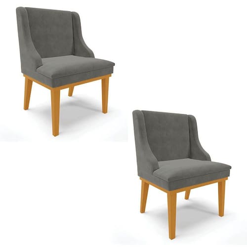 Para quem procura conforto, beleza e funcionalidade, o Kit 2 Cadeiras Estofadas para Sala de Jantar Base Fixa de Madeira Castanho Lia Suede Grafite, da Ibiza é ideal!
