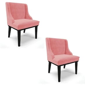 Kit 2 Cadeiras Estofadas Para Sala De Jantar Base Fixa De Madeira Preto Lia Suede Rosê - Ibiza
