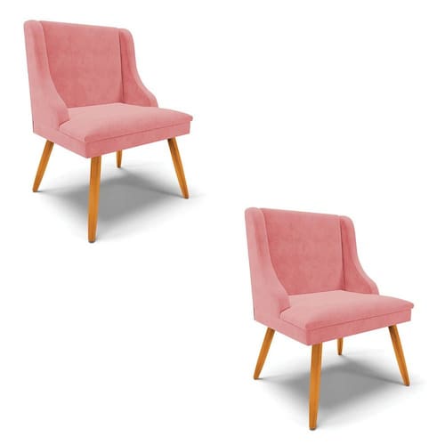 Kit 2 Cadeiras Estofadas para Sala de Jantar Pés Palito Lia Suede Rosê - Ibiza