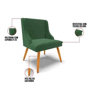 A Cadeira Estofada com Pés Palito vem ganhando o coração das casas brasileiras, deixando-as mais charmosas com um leve toque retrô! Pensando nisso, a Cadeira Estofada Lia foi desenvolvida para dar um toque elegante e clean na decoração da sua casa desde a Sala de Jantar, Sala de Estar, Varanda até Área Gourmet, tornando o ambiente especial para reunir a família e os amigos garantindo momentos memoráveis! O móvel é produzido com madeira de eucalipto de reflorestamento, ecologicamente correto, conferindo qualidade, segurança e resistência! A parte estofada é composta por espuma macia densidade D-23 e revestida em Veludo, tecido elegante e clássico, macio, aconchegante e altamente resistente.