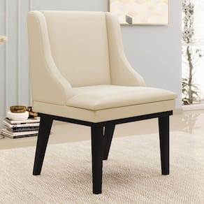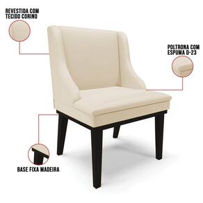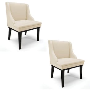 Moderno e aconchegante, são os atributos desse Kit 2 Cadeiras Estofadas Sala de Jantar Base Fixa de Madeira Preto Lia Sintético Bege, da Ibiza, confira!