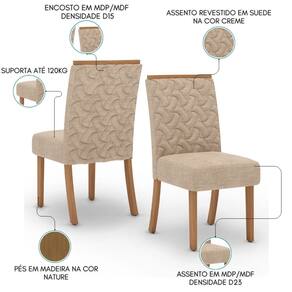 Kit 2 Cadeiras Estofadas Esther é a escolha perfeita para mobiliar a sua sala de jantar. Com design único, possui curvatura no encosto para garantir mais conforto. Sua estrutura é confeccionada em MDP e MDF, proporcionando durabilidade e resistência. Pintura com acabamento em UV (Fosco). Compostas por assento com espuma D18, encosto estofado com espuma D15 que proporcionam mais conforto e qualidade. Revestida com tecido de suede toque suave, garantindo conforto mesmo em longos períodos de uso. Pés fixos e cantoneira de fixação para maior segurança. Suporta até 120 kg. Altura do assento até o chão de 50,5 cm, ideal para diversas composições de ambientes. Com linhas suaves e acabamento refinado, se adapta facilmente a diversos estilos de decoração, desde os mais clássicos até os modernos. É a escolha perfeita para compor ambientes acolhedores e elegantes. Este móvel chegará na sua casa separado em 01 volume.
