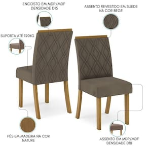 Kit 2 Cadeiras Estofadas Vita é a escolha ideal para mobiliar sua sala de jantar. Com design único, possui curvatura no encosto para mais conforto. Estrutura em MDP e MDF, com pintura UV fosca, oferecendo durabilidade e resistência. Conta com assento com espuma D18 e encosto estofado com espuma D15, revestidos em tecido suede de toque suave, proporcionando conforto mesmo por longos períodos. Os pés são fixos e possuem cantoneira de fixação para maior segurança. Suporta até 120 kg. Altura do assento ao chão: 45,5 cm, ideal para diversas composições de ambientes. Com linhas suaves e acabamento refinado, adapta-se a diferentes estilos de decoração. O produto será entregue em 01 volume.