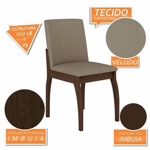 Kit 2 Cadeiras Sucre Possuem um ótimo tamanho e contam com encosto e assento estofados, um material de extrema qualidade e durabilidade e garante um toque agradável e macio.Detalhes Técnicos das Cadeiras:- Acabamento da Cadeira: Pintura com Assento e Encosto Tapeçados- Almofada do Assento: Fixa- Cadeira Estofada: Sim- Peso Suportado da Cadeira: 90 KG- Facilidade da Montagem: Média - Deve ser montada por um Profissional- Tonalidade da estrutura da Cadeira: Imbuia- Tonalidade do Tecido: Veludo Capuccino- Espuma do Assento: D 23- Espuma do Encosto: D 16- Tipo de Pintura: UV Texturizada- Material da Estrutura: MDF 25mm e 18mm- Medida da Cadeira: 87CM x 46CM x 63CMConteúdo da Embalagem:- 02 Cadeiras- Manual de Montagem- Acessório para MontagemObservações Importantes- As imagens ambientadas são meramente ilustrativas e podem apresentar itens que não incorporam o produto;- Todos os nossos produtos são novos, acompanham documento fiscal e possuem garantia de 3 meses, essa garantia cobre somente defeitos de fabricação;- A entrega só será efetuada no endereço do CEP, caso o endereço seja diferente do CEP informado no pedido, a entrega terá cobrança adicional e o comprador arcará com as despesas;- Não realizamos entregas para zonas rurais, via caminhos fluviais e distritos, por isso não aceitamos CEP GERAL da região;- Não é possível realizar o agendamento de entrega do produto, é necessário que acompanhe o rastreio de seu pedido para saber a previsão de entrega;- As entregas somente serão realizadas para um responsável maior de idade (+18);- Enviamos para diversos estados, sendo assim nossas entregas são realizadas por transportadoras parceiras de nossa empresa. Confira as dimensões antes da compra e certifique-se de que o produto passará por elevadores, portas e corredores já que nossa entrega não inclui a subida de lances de escada, transporte por elevador e o lançamento de produtos, em caso de condomínios residenciais a entrega é feita somente até a portaria. Todas as entregas são realizadas em dias e horários comerciais;- Ao receber os seus produtos observe se a embalagem se encontra em perfeitas condições. Se você adquiriu algum móvel, confira atentamente a quantidade de volumes e o aspecto físico das embalagens. Confira também se a cor do móvel está de acordo com o seu pedido;- O prazo de cancelamento por arrependimento é de até 7 dias corridos a contar da data de recebimento;- Os produtos e assistências são enviados DESMONTADOS, MONTAGENS E DESMONTAGENS recomendamos sempre a contratação de um montador profissional e é válido lembrar que o custo desses serviços é por conta do comprador;- Objetos decorativos que aparecem na foto não acompanham o produto;- Evitar a exposição direta à luz solar e à umidade;- Para limpeza, limpar com pano macio e seco, não utilizar qualquer outro tipo de produtos químicos;- As cores do produto podem variar de acordo com o monitor, a iluminação do ambiente ou sua percepção visual.