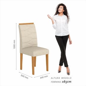 Detalhes Técnicos das Cadeiras -Assento e Encosto Tapeçados, Estofados e Fixos -Cadeira suporta até 90KG -Facilidade da Montagem:Média -Tonalidade Cadeira:Cinamomo/Suede Bege -Espuma Assento:D23 -Espuma Encosto:D16 -Pintura UV Texturizada -Material Estrutura:MDF 25mm/18mm -Medida da Cadeira:100CMx44CMx50CM