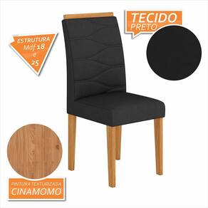 Detalhes Técnicos das Cadeiras -Assento e Encosto Tapeçados, Estofados e Fixos -Cadeira suporta até 90KG -Facilidade da Montagem:Média -Tonalidade Cadeira:Cinamomo/Suede Preto -Espuma Assento:D23 -Espuma Encosto:D16 -Pintura UV Texturizada -Material Estrutura:MDF 25mm/18mm -Medida da Cadeira:100CMx44CMx50CM