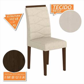 Detalhes Técnicos das Cadeiras -Assento e Encosto Tapeçados, Estofados e Fixos -Cadeira suporta até 90KG -Facilidade da Montagem:Média -Tonalidade Cadeira:Imbuia/Suede Bege -Espuma Assento:D23 -Espuma Encosto:D16 -Pintura UV Texturizada -Material Estrutura:MDF 25mm/18mm -Medida da Cadeira:100CMx44CMx50CM