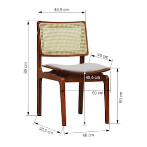 - Materiais: Estrutura em madeira de eucalipto, encosto com telinha sextavada aplicada e assento anatômico envernizado
