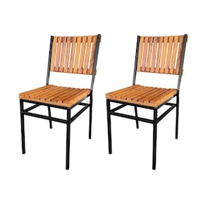 Kit 2 Cadeiras Industrial Maju com Ripas em Madeira Maciça - Natural - Marrom