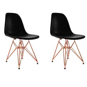 Kit 2 Cadeiras Jantar Assento Preto Eiffel Eames Base Ferro Cobre - Laranja