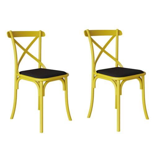 Kit 2 Cadeiras Katrina Assento Corano Preto Aço Amarelo