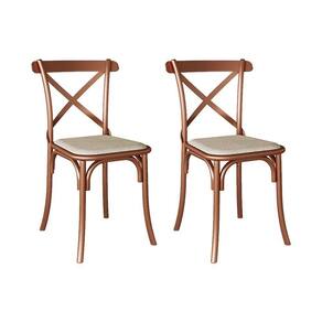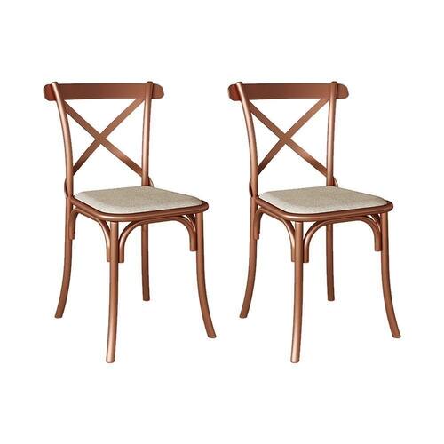 Altura: 90cmlargura: 44cmprofundidade: 44cmpeso: 5,1kg CadaKit 2 Cadeiras Katrina Premium AÃo Cobre Assento Bege