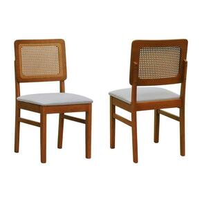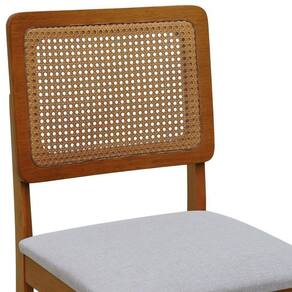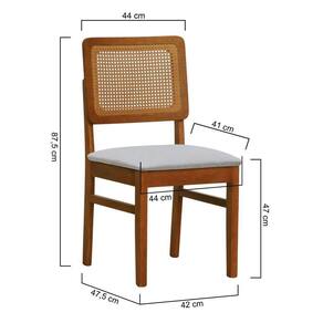 Kit 2 Cadeiras Madeira Maciça Lyon Encosto Telinha Amêndoa - Amêndoa Assento Estofado Linho Bege Mescla Impermeável
