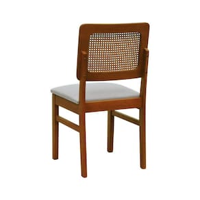 Kit 2 Cadeiras Madeira Maciça Lyon Encosto Telinha Amêndoa Assento Estofado Linho Bege Mescla Impermeável -