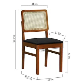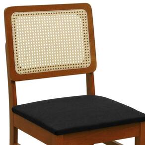 Kit 2 Cadeiras Madeira Maciça Lyon Encosto Telinha Natural - Amêndoa Assento Estofado Linho Preto Textura
