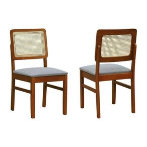 Kit 2 Cadeiras Madeira Maciça Lyon Encosto Telinha Natural - Amêndoa Assento Estofado Linho Cinza Mescla Impermeável -
