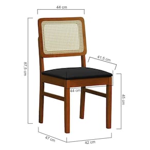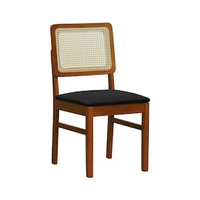 Kit 2 Cadeiras Madeira Maciça Lyon Encosto Telinha Natural - Amêndoa Assento Estofado Linho Preto Textura -