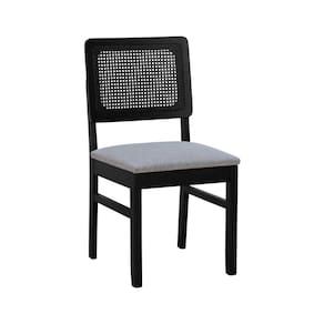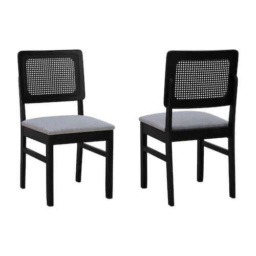 Kit 2 Cadeiras Madeira Maciça Lyon Encosto Telinha - Preto Assento Estofado Linho Cinza Mescla Impermeável -