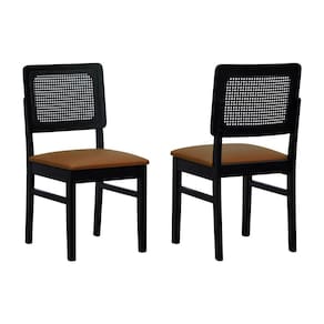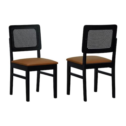 Kit 2 Cadeiras Madeira Maciça Lyon Encosto Telinha - Preto Assento Estofado Corano Caramelo -