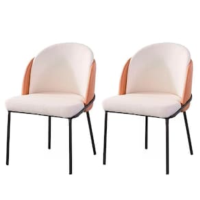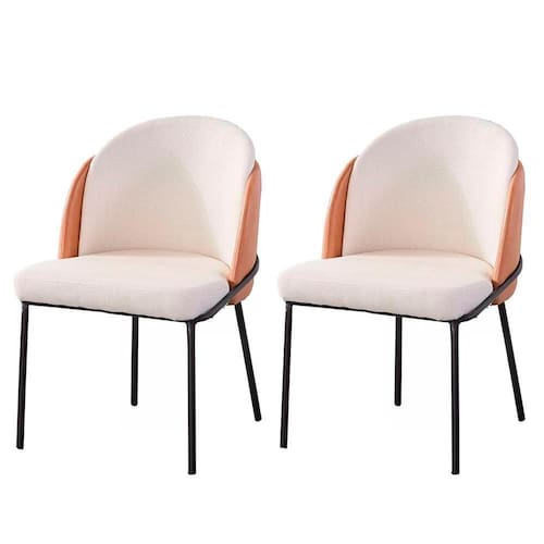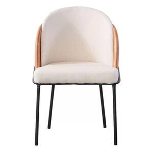 Kit 2 Cadeiras Nevada Denali Fratini Assento Tecido Nude Bucle Encosto Pu Caramelo Base Aço Carbono