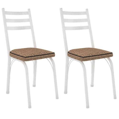 Kit 2 Cadeiras Para Cozinha Tubular D-13 Nara De Aço Branco/rattan