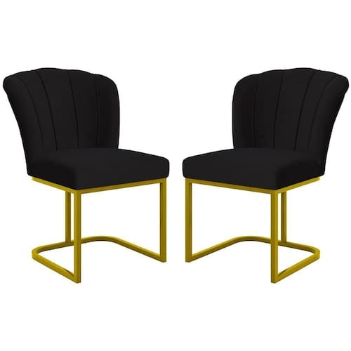 Kit 2 Cadeiras Poltrona Flor Pés Metal Dourado Mesa Quarto Cozinha Cor:preto Preto