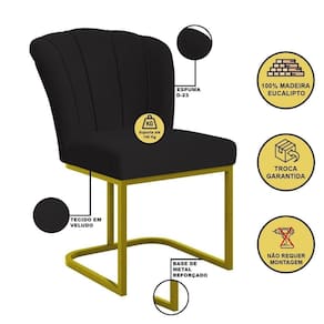 Desenho Do Tecido: Veludo | Estrutura: Madeira | Marca: Balaqui Decor | Quantidade de Caixas Por Embalagem: 1 | Tipo de Produto: Cadeira de Jantar | Material: Madeira | Material De Estofamento: Veludo | Tipo de Tecido: Veludo | Tipo de Garantia: Garantia do Fabricante | Montagem: Montagem Completa | Tipo de Cadeira: Cadeiras de Sala de Jantar | Móvel Dobrável: Não | Altura do Encosto da Cadeira: Encosto médio | Duração da Garantia: 3 meses | Coleção de Antiguidade: Não | Cor Da Estrutura Da Cadeira: Dourado | Material dos Pés: Metal | Altura: 81 cm | Largura: 69 cm | Profundidade: 49 cm | Dimensões do produto (A x L x C): 81 x 69 x 49 Cor: Preto