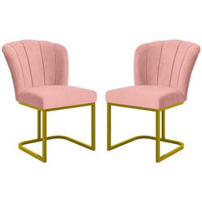Kit 2 Cadeiras Poltrona Flor Pés Metal Dourado Mesa Quarto Cozinha Cor:rosa Rosa