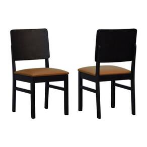 Kit 2 Cadeiras Quéops Madeira Maciça Encosto Anatômico Assento Estofado - Preto Corano Caramelo
