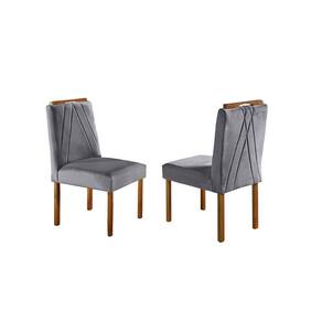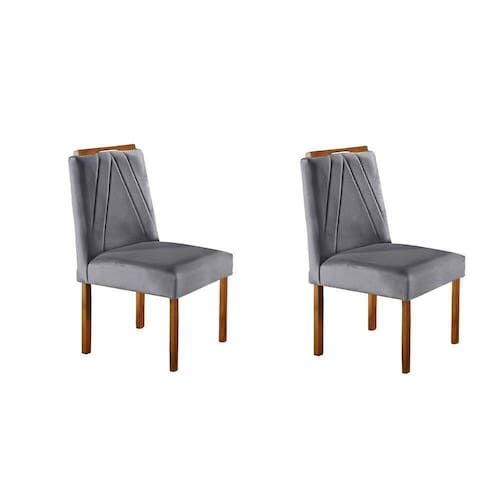 Kit 2 Cadeiras Safira Madeira Maciça Veludo Móveis Mundial Cinza Par de Cadeiras Safira em Madeira Macica e Tecido Veludo Caracteristicas: Material da Estrutura: Madeira Macica de Eucaliptus Tratado, 100 Imunizado e Seco em Estufa. Acabamento: Resinado e Envernizado. Assento: Espuma D26 Soft Real. Encosto: Espuma D18 Soft Real. Aplique no Encosto (Puxador): Sim. Assento/Pes: Reforcado. Tecido Cadeira: Veludo. Capacidade em KG por Assento: Aproximadamente 150kg. Embalagem Cadeiras: Caixa de Papelao (Duas cadeiras montadas por caixa).