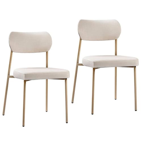 Kit 2 Cadeiras Sala de Jantar Linho Sintético Design aço Carbono Lavinia Areia/Champanhe - Bege