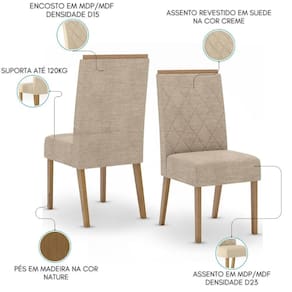 Kit 2 Cadeiras Estofadas Nina é a escolha perfeita para mobiliar a sua sala de jantar. Com design único, possui curvatura no encosto para garantir mais conforto. Sua estrutura é confeccionada em MDP e MDF, proporcionando durabilidade e resistência. Pintura com acabamento em UV (Fosco). Compostas por assento com espuma D23, encosto estofado com espuma D15 que proporcionam mais conforto e qualidade. Revestida com tecido de suede toque suave, garantindo conforto mesmo em longos períodos de uso. Pés fixos e cantoneira de fixação para maior segurança. Suporta até 120 kg. Altura do assento até o chão de 40,5 cm, ideal para diversas composições de ambientes. Com linhas suaves e acabamento refinado, se adapta facilmente a diversos estilos de decoração, desde os mais clássicos até os modernos. É a escolha perfeita para compor ambientes acolhedores e elegantes. Este móvel chegará na sua casa separado em 01 volume.