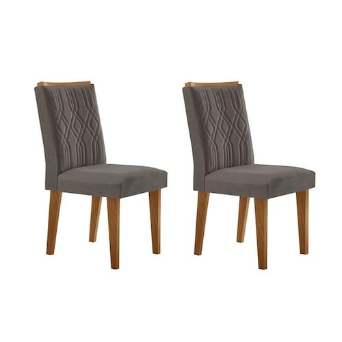 Kit 2 Cadeiras Sala Jantar Alegra 2 Un Madeira Capuccino/Linho Grafite - Rufato - Cinza