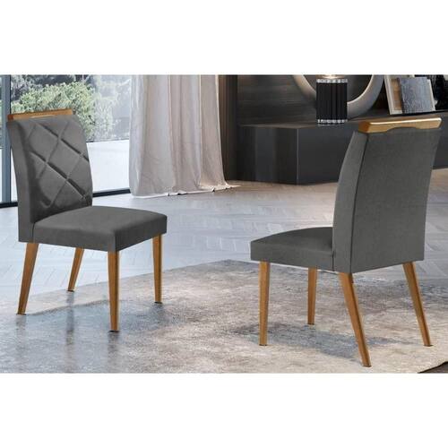 Kit 2 Cadeiras Sala Jantar Melissa 2 Un Madeira Capuccino/Linho Grafite - Rufato