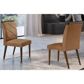 Kit 2 Cadeiras Sala Jantar Melissa 2 Un Madeira Capuccino Suede Marrom Rufato