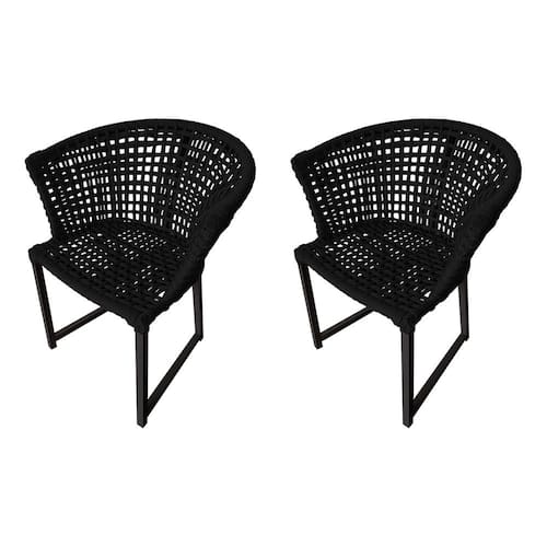 Kit 2 Cadeiras Salinas Corda Náutica Base em Alumínio Preto/preto - Preto