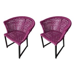 Kit 2 Cadeiras Salinas Corda Náutica Base Em Alumínio Preto/rosa - Cor: Rosa