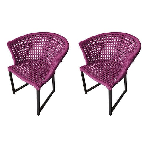 Kit 2 Cadeiras Salinas Corda Náutica Base Em Alumínio Preto-rosa - Cor: Rosa