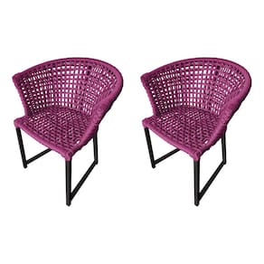 Kit 2 Cadeiras Salinas Corda Náutica Base em Alumínio Preto/rosa