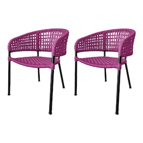 Kit 2 Cadeiras Sol Corda Náutica Base Em Alumínio Preto-rosa - Cor: Rosa